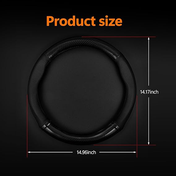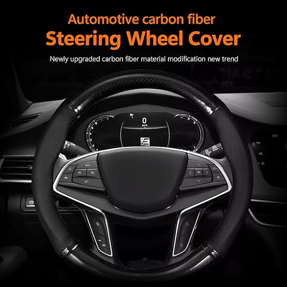 - 🚓 Carbon Fiber Leather Material: The steering wheel cover is made of carbon fiber leather material. Carbon fiber has the characteristics of light weight, high strength and wear resistance. The use of carbon fiber leather not only increases the hardness and durability of the steering wheel cover, but also gives the entire cab a stylish and technological feel.