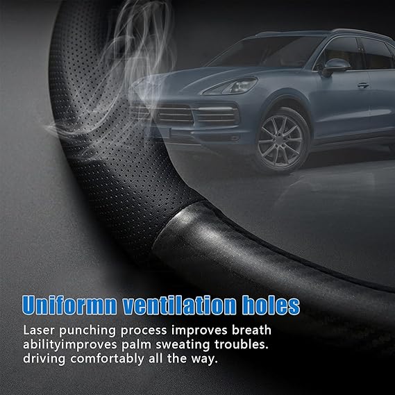 - 🚓 Breathable Pinhole Design: The surface of the steering wheel cover presents a breathable effect through a pinhole design, which can promote air circulation, effectively reduce moisture and discomfort when holding the steering wheel for a long time, and provide a more comfortable driving experience.