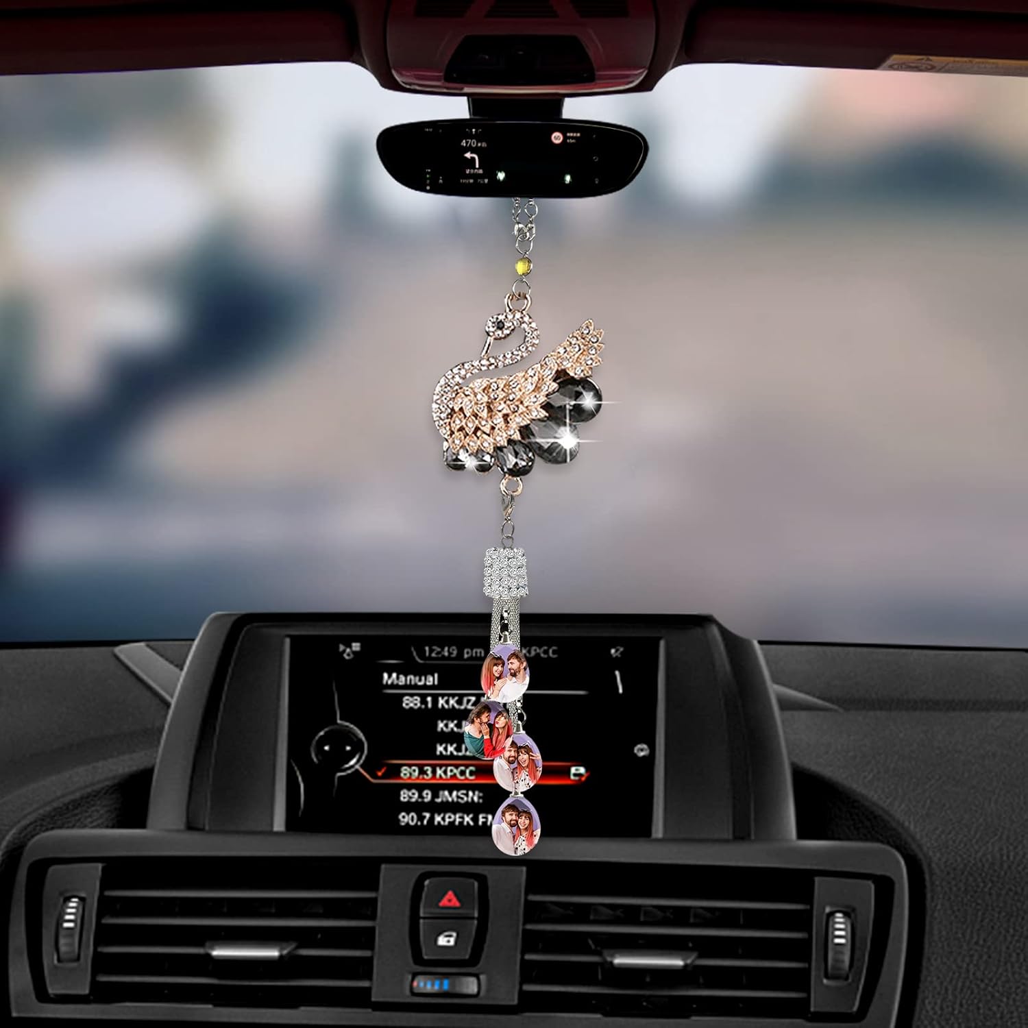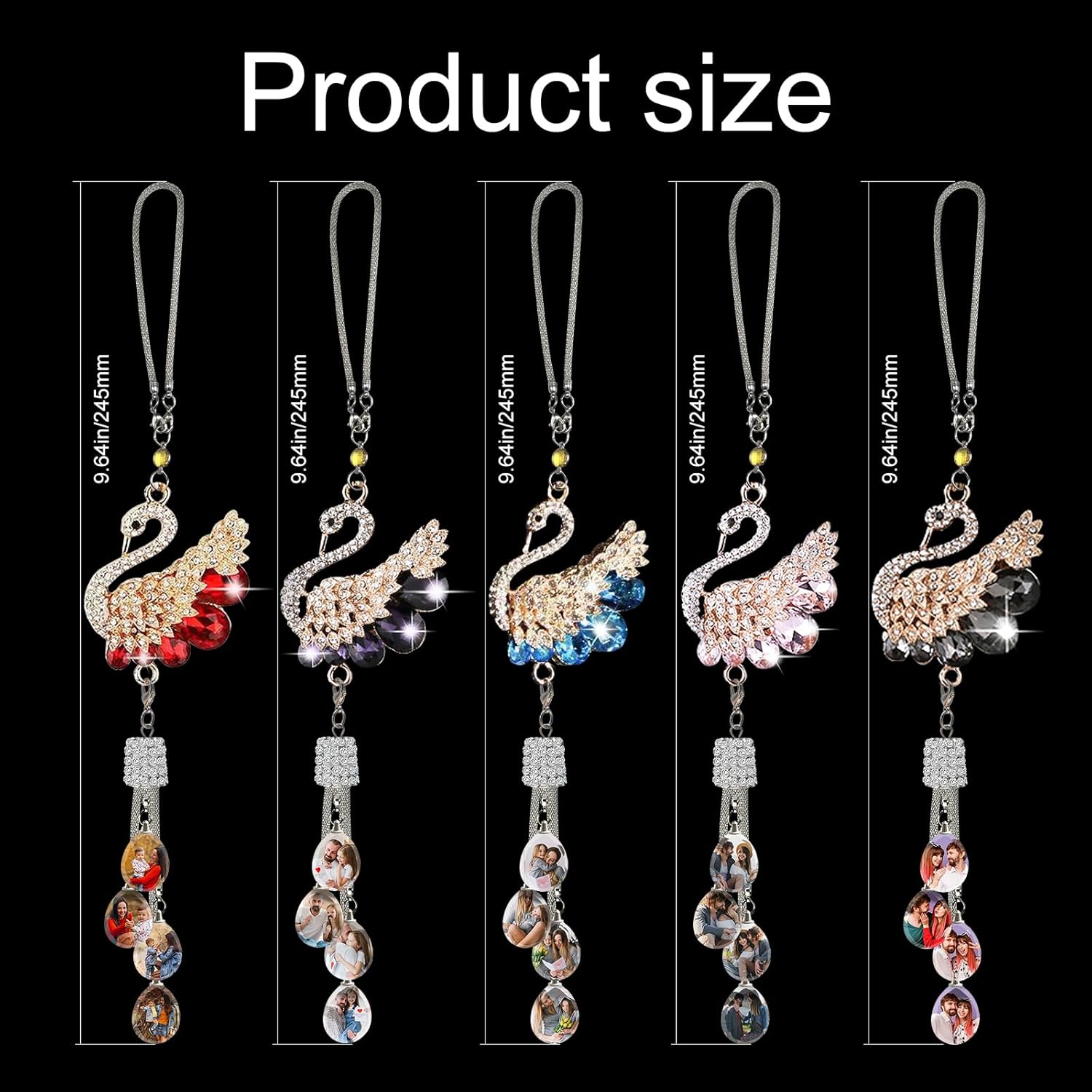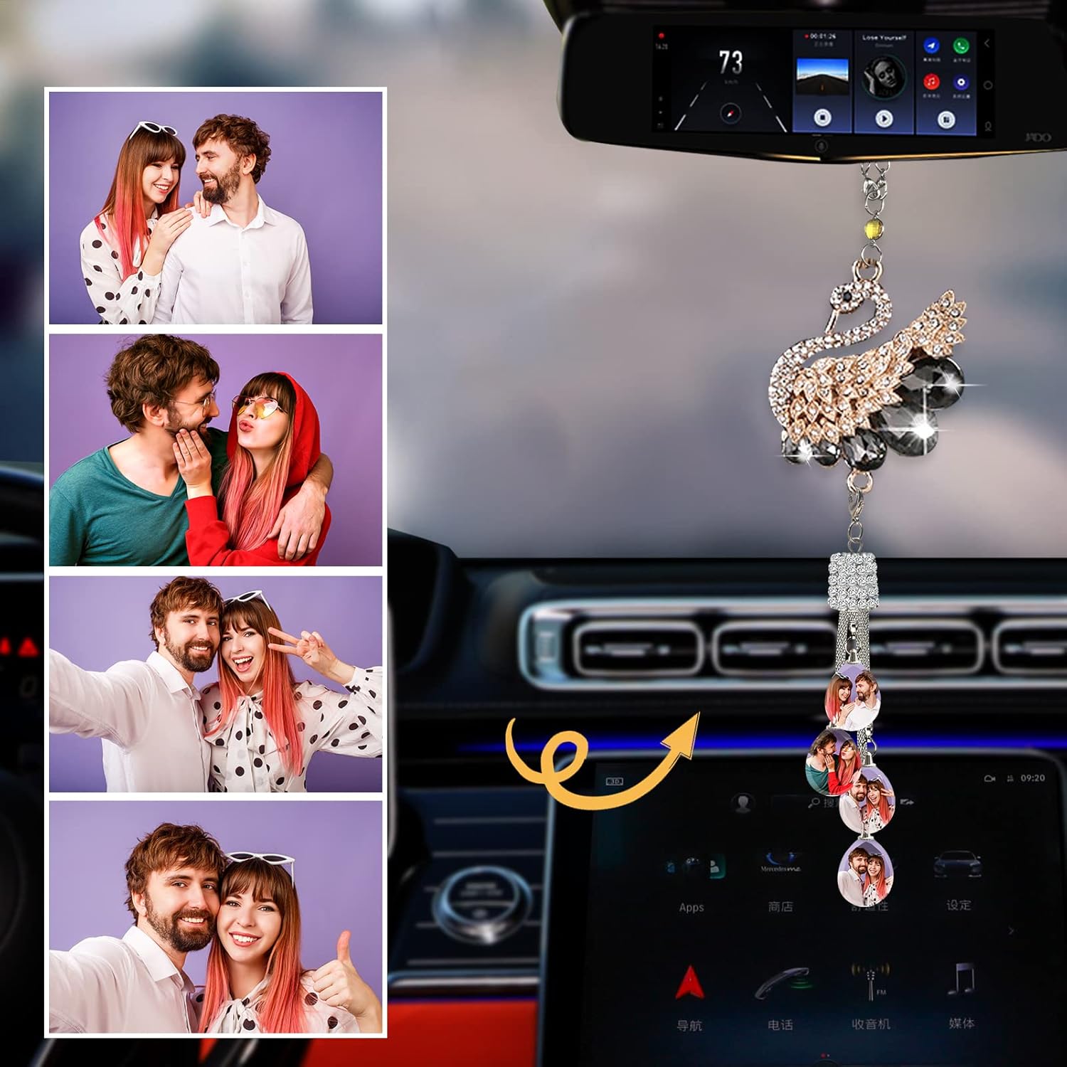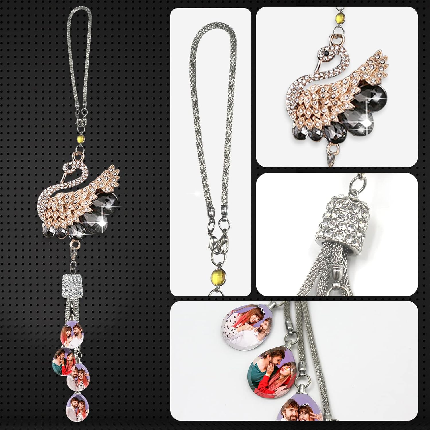 ছাড়Car Mirror Pendant Swan Crystal, Personalised Photo Car Hanging Accessories, Custom Car Interior Decoration, Custom Pendant Photo Frame